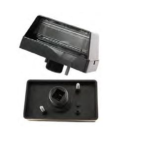 Éclairage de plaque gauche COBO 02.482.000 avec ampoule R5W, corps en polypropylène et étanchéité IP55. Dimensions 116×66×60 mm, fixation par vis, connecteur fileté et homologation ECE–SAE–DOT.